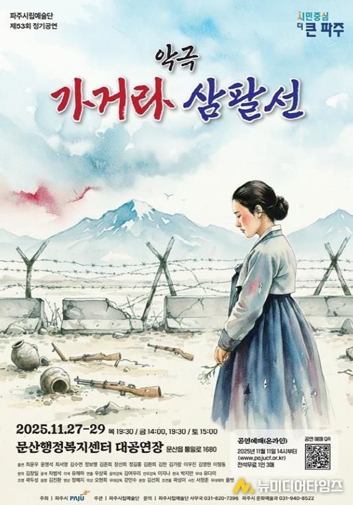 파주시는 시립예술단 제53회 정기공연을 통해 분단의 현실을 배경으로 사랑과 희망을 잃지 않았던 인물들의 이야기를 소재로 한 악극 ‘가거라 삼팔선’을 오는 27일부터 29일까지 총 4회, 3일에 걸쳐 문산행복센터 대공연장에서 선보인다고 밝혔다.
