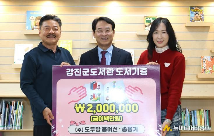 ㈜도두맘은 지난 11일 강진군어린이도서관에서 열린 기증식을 통해 200만 원 상당의 도서 110여 권을 기증했다.