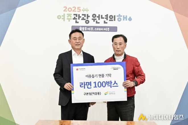 지난 11월 11일 여흥동 주민인 구본정님께서 여주시청을 방문하여 이웃돕기 현물(라면 100박스, 140만원 상당)을 기탁했다.