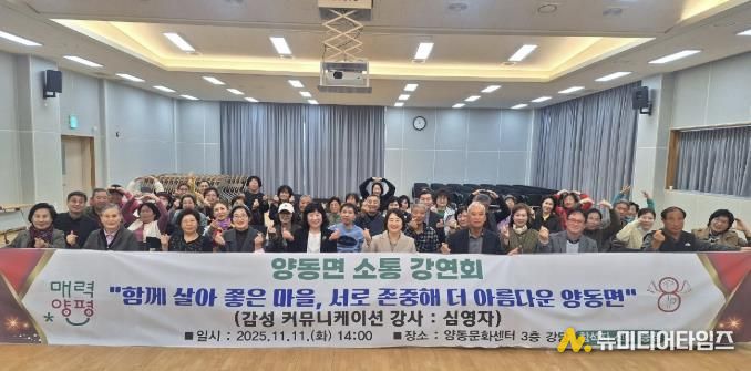 양평군 양동면은 11일 오후 2시 양동문화센터 3층 대강당에서 ‘함께 살아 좋은 마을, 서로 존중해 더 아름다운 양동면’을 주제로 소통강연회를 개최했다.
