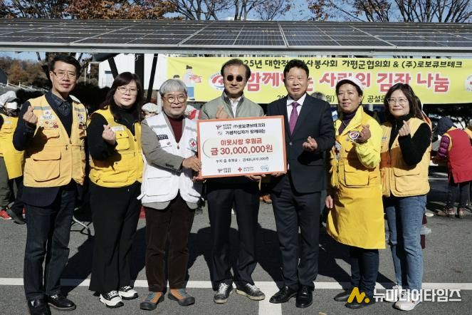 대한적십자사봉사회 가평군지구협의회는 최근 로보큐브테크㈜가 대한적십자사에 기탁한 3,000만 원을 활용해 ‘희망풍차 사랑의 김장 나눔’ 행사를 열었다.