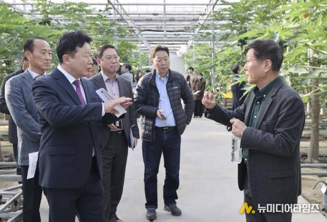가평군 일행은 파파야·바나나 등을 생산하는 선우팜의 스마트팜 하우스 5개동을 둘러보고 재배기술, 시설 운영체계, 독자적인 종자·육묘 기술 등을 청취했다. 선우팜은 2020년 법인 설립 이후 2만6천여㎡ 부지에 1만3천여㎡ 규모의 스마트팜 시설을 구축해 파파야 1,900주, 바나나 30주를 식재하고 연간 약 100톤을 생산하고 있다.