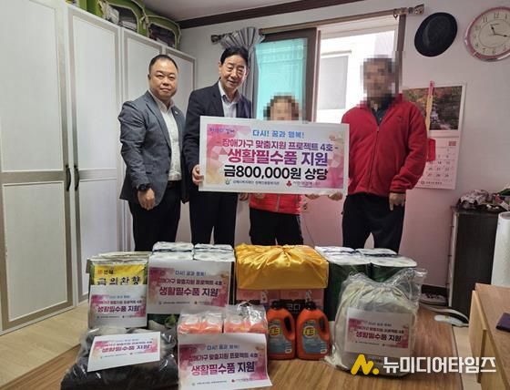 (재)김해시복지재단 김해시장애인종합복지관은 지난 12일, 장애가구 맞춤 지원 프로젝트 『Well-Life: 잘살아보세!!』와 관련하여 생활필수품 전달식을 진행했다.