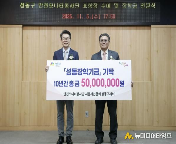 정원오 성동구청장은 "10년 동안 변함없이 지역 인재 육성을 위해 장학금을 기부해 주신 성동구 안전모니터봉사단에 진심으로 감사드린다"라며, "이러한 꾸준한 나눔이 성동구의 안전문화와 교육문화 모두를 풍요롭게 하고 있다"라고 말했다.