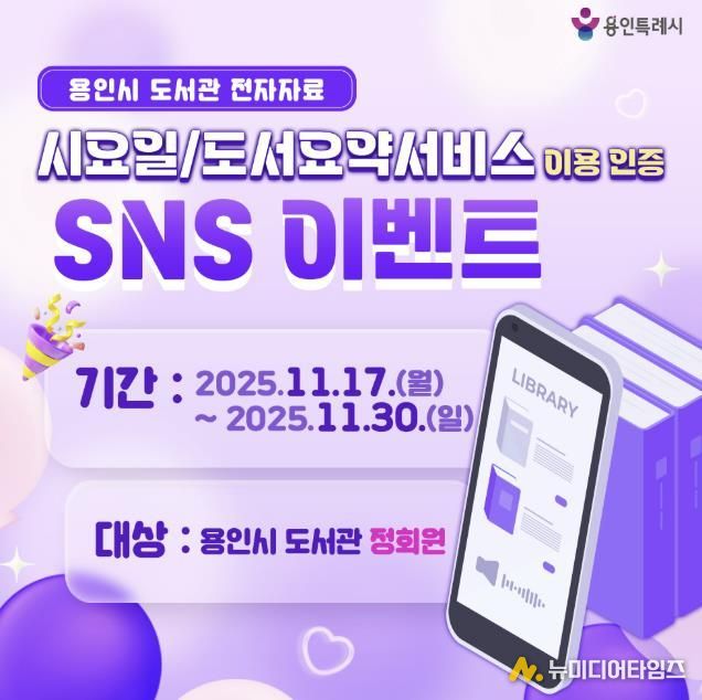 용인특례시는 용인시도서관 전자자료인 시요일과 도서요약서비스 이용자를 대상으로 사회관계망서비스(SNS) 이벤트를 운영한다고 14일 밝혔다.