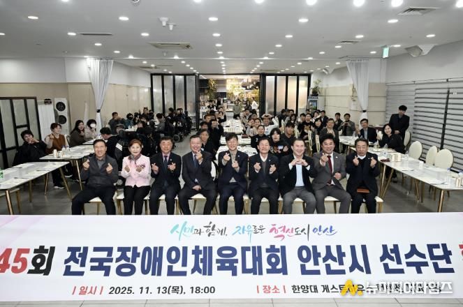 안산시는 지난 13일 한양대 게스트하우스컨벤션에서 ‘제45회 전국장애인체육대회’ 안산시 선수단 환영식을 개최했다고 14일 밝혔다.