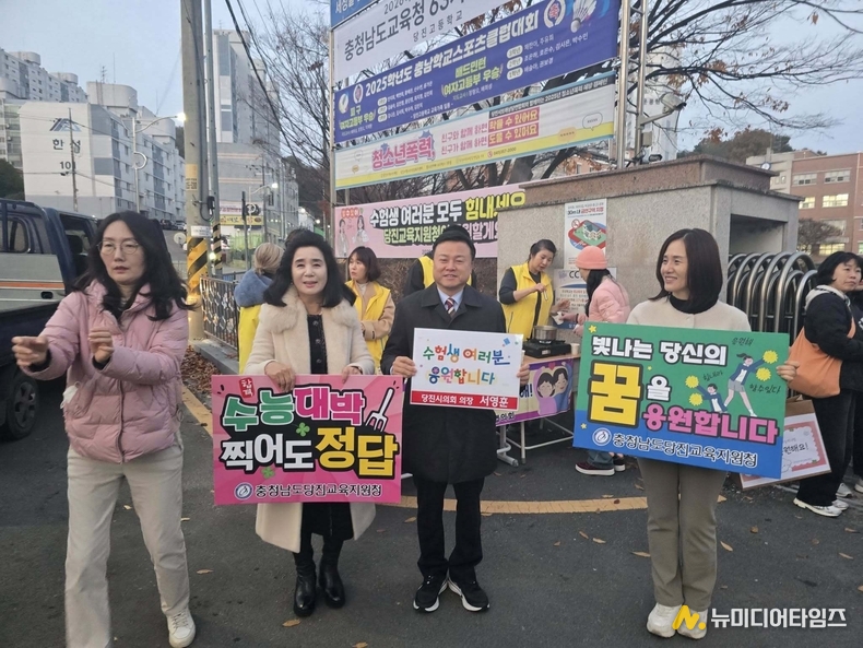 정용선 국민의힘 당진 당협위원장은 수험생들보다도 부모님과 조부모님들이 더 긴장하는 날이라며, 신평고, 호서고, 당진고 등 고사장을 찾아 응원 대열에 합류했다.