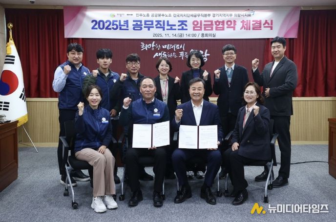 의왕시가 11월 14일 시청 중회의실에서 공무직 대표노조인 공공운수노동조합 전국자치단체공무직본부 경기지역지부 의왕시지회(지회장 이태겸)와 2025년 임금협약을 체결했다.