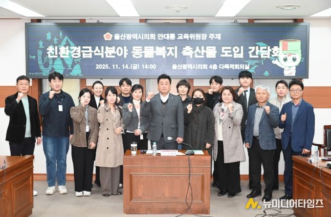 울산광역시의회 교육위원회 안대룡 위원장은 11월 14일 오후 2시, 시의회 4층 다목적회의실에서 ‘친환경급식분야 동물복지 축산물 도입 간담회’를 열고, 울산광역시교육청, 구·군 관계자, 지역 동물복지 인증농가 및 관련 기관들과 울산 학교급식의 지속가능성과 동물복지 강화를 위한 정책 방향을 논의했다.