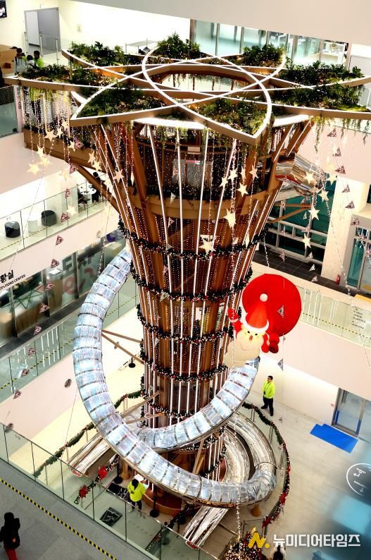 동작구가 신청사의 명물, 슬라이드 ‘동작스타’를 초대형 크리스마스트리로 새롭게 단장했다고 밝혔다.