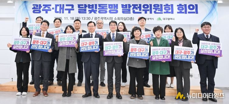 대구광역시와 광주광역시는 11월 18일 오후 1시 30분, 광주시청에서 개최된 ‘2025년 달빛동맹발전위원회’에서 ‘대한민국 AI 3대 강국 선도’ 등의 비전을 담은 퍼포먼스를 통해 협력 의지를 다지며, 달빛철도에 이은 AI 중심의 초광역협력 2.0 시대 개막을 알렸다.