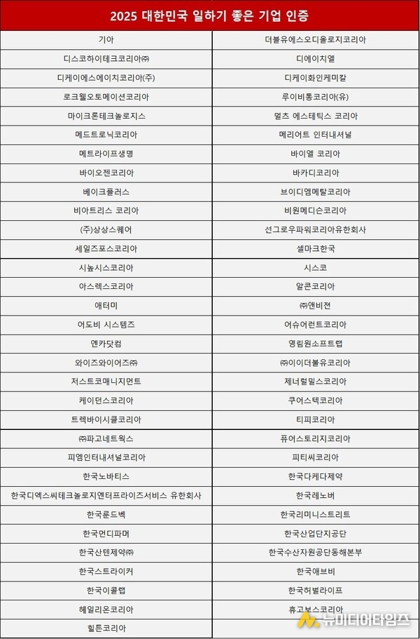 서울, 한국 2025년 11월 19일 -- 글로벌 신뢰경영 평가 기관인 Great Place To Work® Institute와 GPTW코리아(대표 지방근)가 주최한 '2025 Certification Nation Day - 한국에서 가장 일하기 좋은 기업'이 발표됐다.