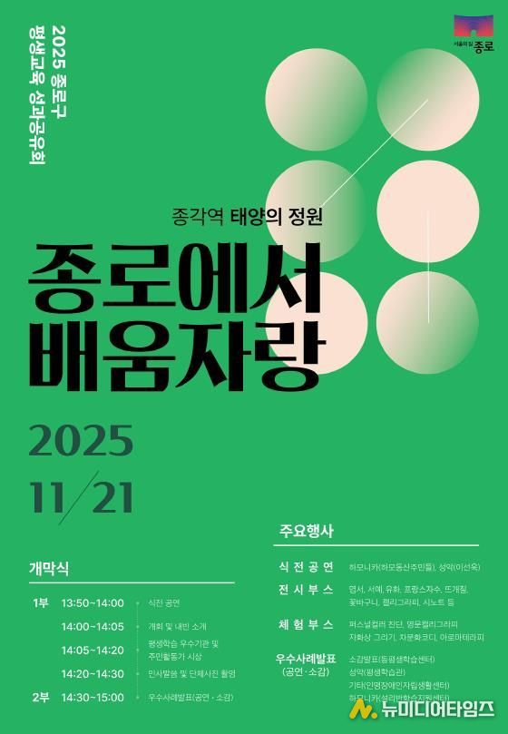 종로구가 11월 21일 12시부터 16시까지 종각역 태양의 정원에서 '평생교육 성과공유회'를 개최한다.