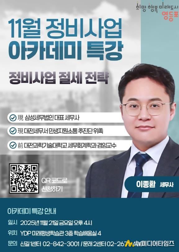 영등포구가 오는 11월 21일 YDP미래평생학습관에서 재개발‧재건축에 관심 있는 구민을 대상으로 ‘정비사업 아카데미’를 개최한다고 밝혔다.