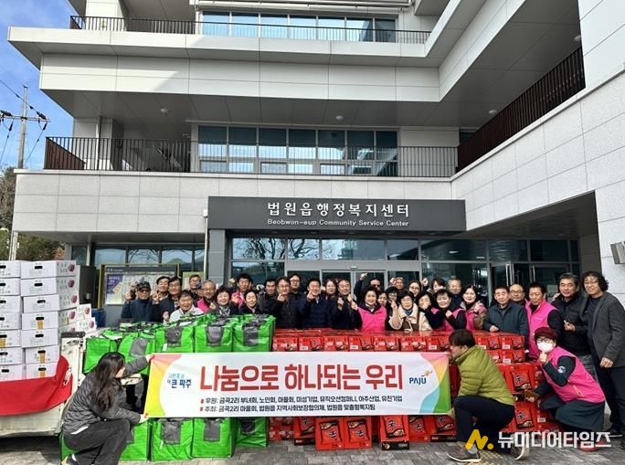 파주시 법원읍 금곡2리 마을회는 지역사회 나눔 확산을 위해 지난 17일, 법원읍 행정복지센터에서 관내 기업인 뮤직오션컴퍼니, 미성기업, 유진기업과 함께 참여한 겨울맞이 이웃 돕기 나눔 행사를 진행했다.