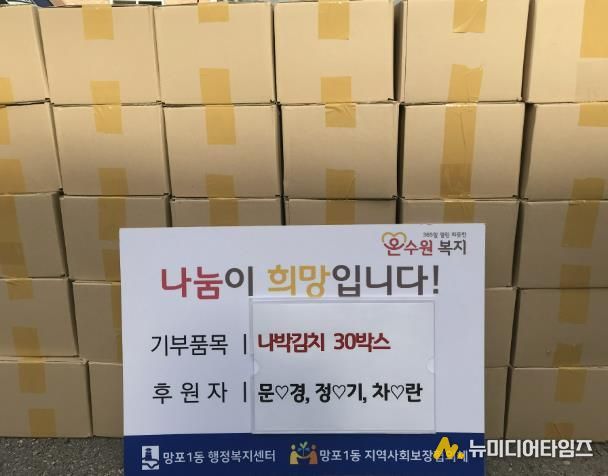 수원시 영통구 망포1동행정복지센터는 지난 17일, 망포1동 주민 3명이 저소득 취약계층을 위해 나박김치 30박스를 후원했다고 밝혔다.