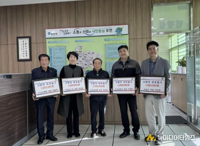 포천시 가산면은 지난 18일, 관내 5개 기업체 ㈜우림섬유, ㈜고려금속, ㈜로고, ㈜유진씨엔씨(CNC), ㈜신진메탈이 총 700만 원의 성금을 가산면행정복지센터와 가산면노인회분회에 전달했다고 밝혔다.
