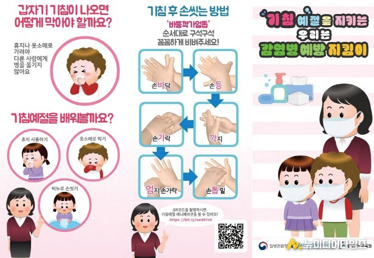 이번 자료에는 ▲기침 예절 지키기 ▲올바른 손 씻기의 생활화 ▲주기적 환기 ▲의심 증상 시 의료기관 방문하여 적적한 진료 받기 등 학생들이 일상에서 실천할 수 있는 감염병 예방의 기본 수칙이 담겨 있다.