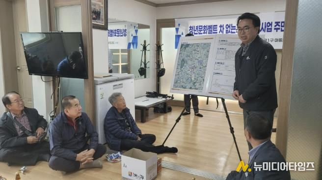 영암군이 14일 영암읍 동무1구 마을회관에서 ‘청년문화벨트 차 없는 거리 조성사업 주민설명회’를 열고, 의견을 수렴했다.