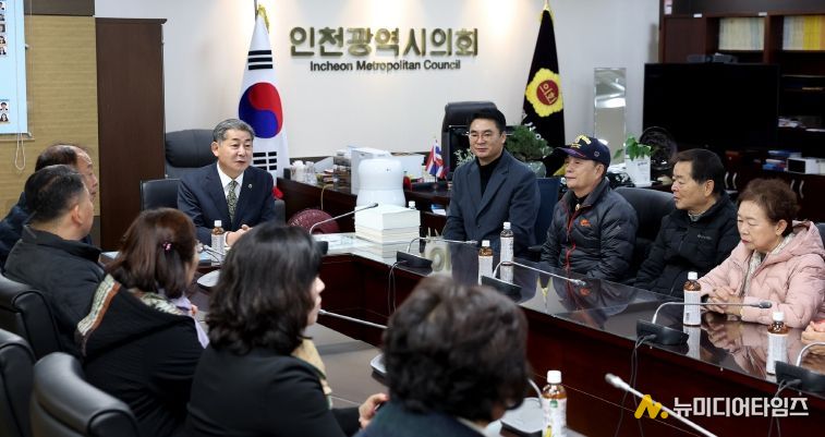 인천광역시의회 정해권 의장(국·연수구1)은 조현영 의원과 함께 19일 인천시의회를 방문한 연수구 자율방범연합대을 접견하고 지역 치안 강화와 공동체 안전망 구축 방향에 대해 깊이 있는 의견을 나눴다.
