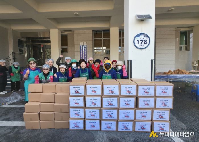 완성된 김장김치는 300여 포기로, 부녀회 회원과 문촌7·9종합사회복지관 직원들이 독거노인 등 저소득 100여 가구에 방문해 전달했다.