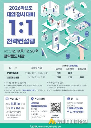남양주시는 11월 21일부터 12월 7일까지 ‘2026학년도 대입 정시 대비 1:1 전략컨설팅’에 참여할 관내 수험생을 모집한다.