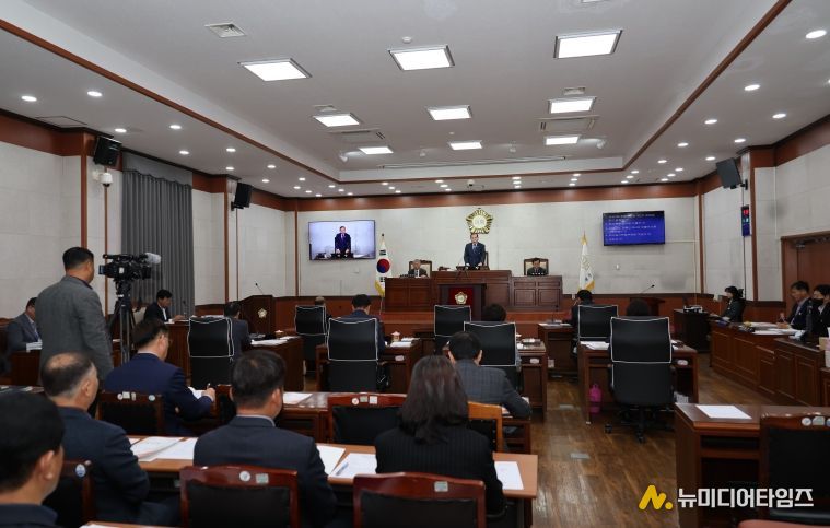김재승 의장은 개회사를 통해“이번 정례회는 2025년을 마무리하는 마지막 회기로서, 지난 1년의 군정 운영을 되돌아보고 새해의 발전 방향을 설계하는 매우 중요한 회기”임을 강조하며, “각 사업의 필요성과 효율성을 면밀히 검토하여 재정 건전성과 지역 균형 발전이라는 두 가지 원칙 아래 심도 있는 심사를 진행하겠다”고 말했다.