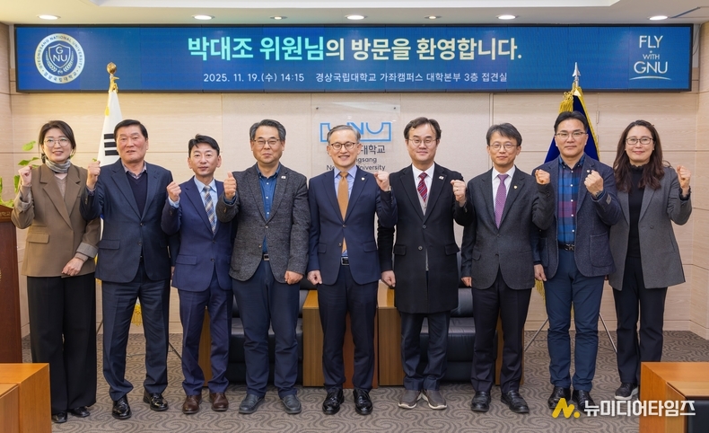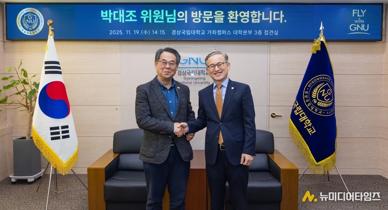 경상국립대학교는 지난 11월 19일 가좌캠퍼스 본관 총장실에서 박대조 대통령 직속 국가AI전략위원회 자문위원을 초청해 간담회를 가졌다. 이날 간담회에는 박 자문위원을 비롯해 김성훈 인제대 산학협력단 특임교수(前 경남도의원), 최진덕 경남도체육회 부회장, 김봉조 경상국립대 교학부총장, 오재신 국제처장 등 대학 주요 보직자들이 참석했다.