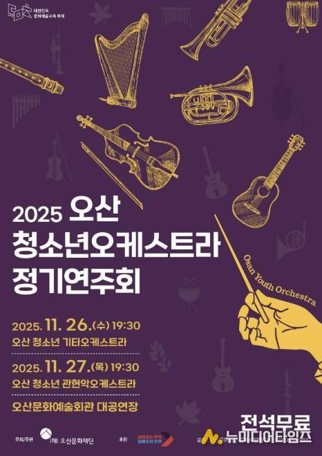 오산문화재단이 주최하고 오산시가 후원하는 ‘2025 오산 청소년 오케스트라 정기연주회’가 오는 11월 26일부터 27일까지 오산문화예술회관 대공연장에서 이틀간 개최된다. 공연은 전석 무료로 시민 누구나 관람할 수 있다.
