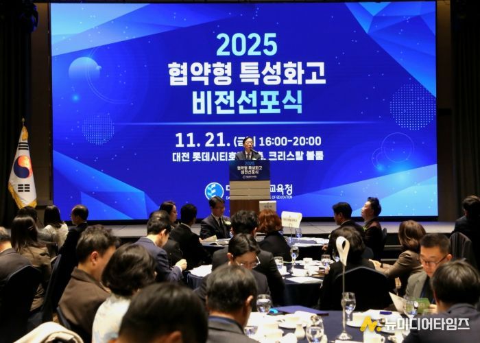 대전시교육청은 11월 21일 대전 롯데시티호텔 크리스탈 볼룸에서 협약형 특성화고 컨소시엄의 공동 비전을 확립하고 지역 산업 인재 양성을 위한 협력을 강화하기 위해 '2025년 협약형 특성화고 비전 선포식'을 개최했다고 밝혔다.