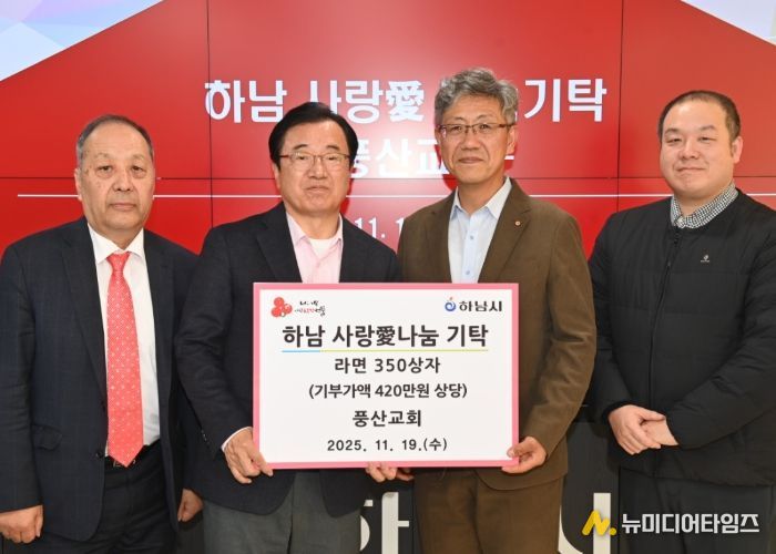 지난 19일, 미사3동 소재 풍산교회는 하남시에 라면 350박스(420만원 상당)을 기부하며 기탁식을 가졌다.