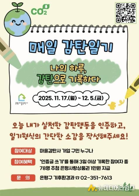 또한 ‘매일 감탄일기’ 참여자 중 일부를 추첨해 은평사랑상품권을 지급함으로써 구민들의 적극적인 참여를 독려하고 탄소중립 실천문화 확산과 기후위기 대응의 가치를 함께 나눌 계획이다.