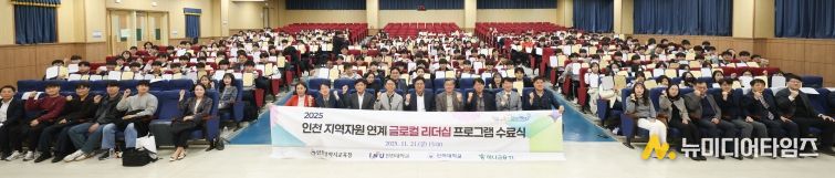 인천광역시교육청은 21일 고등학교 20개교 세계시민교육 동아리 학생과 교원, 학부모, 대학 지도교수, 국제기구 관계자, 하나금융TI 멘토 등 350여 명이 참석한 가운데 ‘2025 인천 지역자원 연계 글로컬 리더십 프로그램’ 수료식을 개최했다.