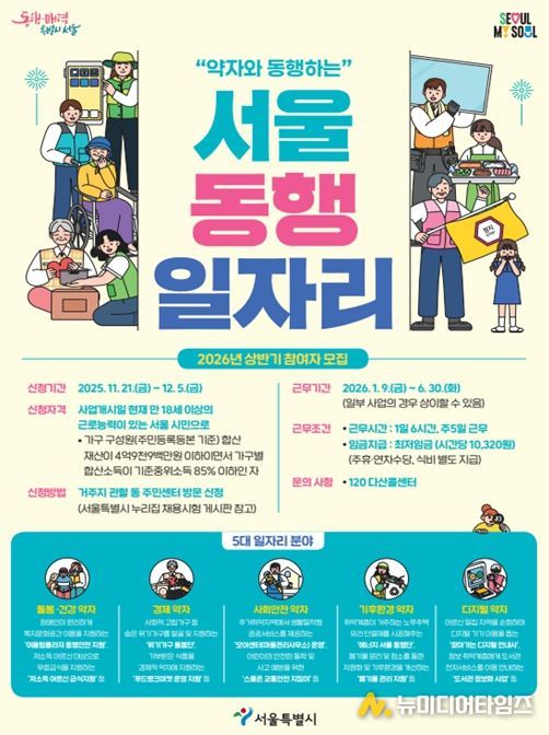 참여를 희망하는 시민은 12월 5일까지 주소지 동주민센터에서 상담 및 신청이 가능하다. 대상은 18세 이상 서울시민으로, 세대원 합산 중위소득 85% 이하이면서 합산재산 4억 9,900만 원 이하인 경우 신청할 수 있다. 최종 선발된 참여자는 1일 6시간, 주 5일 근무하며 일급은 세전 62,000원 수준으로 월 평균 약 180만 원을 받는다.