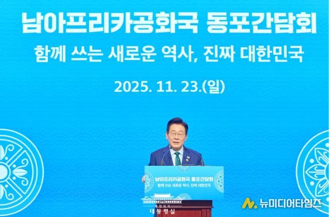 주요 20개국(G20) 정상회의 참석을 위해 남아프리카공화국을 방문한 이재명 대통령은 23일(현지시간) 양국 수교 후 최초로 동포간담회를 개최해 현지에 거주하는 동포들을 격려했다.