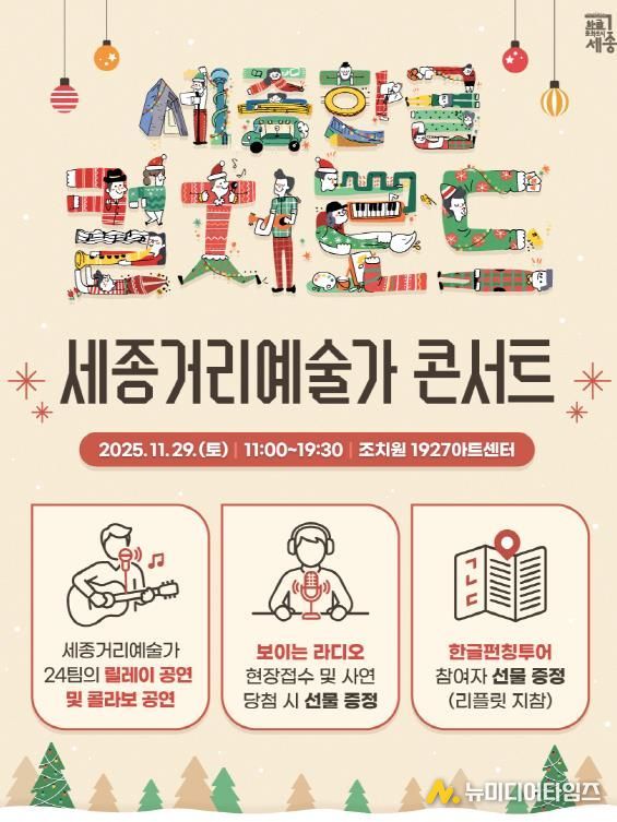 세종시문화관광재단은 오는 11월 29일 오전 11시, 조치원읍 1927아트센터에서 ‘세종거리예술가 콘서트’를 개최한다.