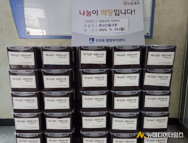 공순정 연무동장은 “추운 겨울을 앞두고 따뜻한 정성을 담아 김장김치를 기부해주신 광교산울교회에 깊이 감사드린다”며 “기부해주신 김치는 꼭 필요한 이웃들에게 소중히 전달하겠다”고 전했다.