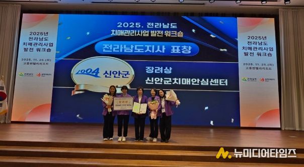 신안군 치매안심센터가 25일 고흥군에서 열린 ‘2025년 전라남도 치매관리사업 발전대회’에서 도내 22개 시·군 보건소 중 우수기관으로 선정돼 전라남도지사 기관표창을 수상했다.