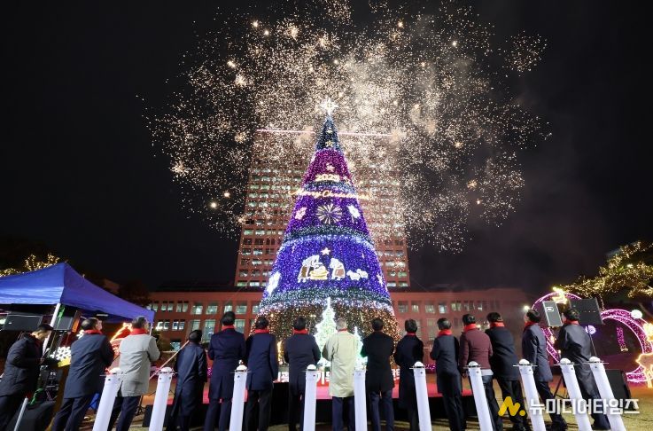 대전시는 25일 시청 남문광장에서 연말연시를 밝히는 성탄트리 점등식을 개최했다.