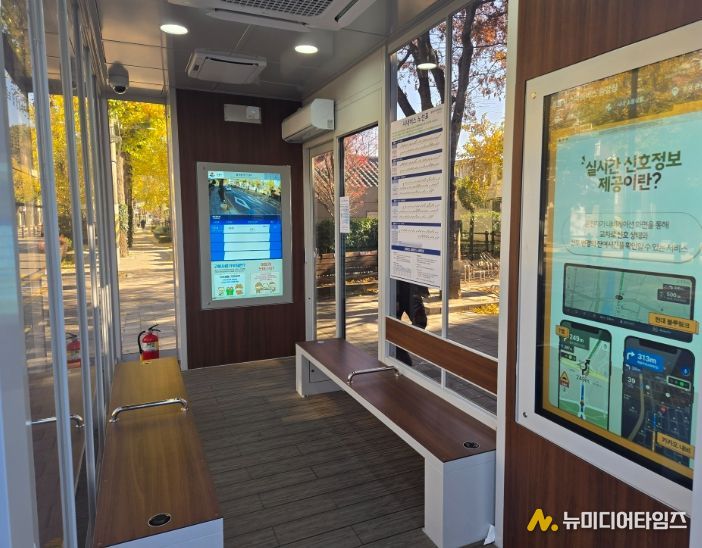 실내에 설치된 스크린에는 승강장 외부 CCTV 영상과 버스정보시스템(BIS)이 연계되어, 정류장으로 접근하는 버스의 현재 상황을 쉽게 확인하여 승차 편의와 안정성을 높였다.