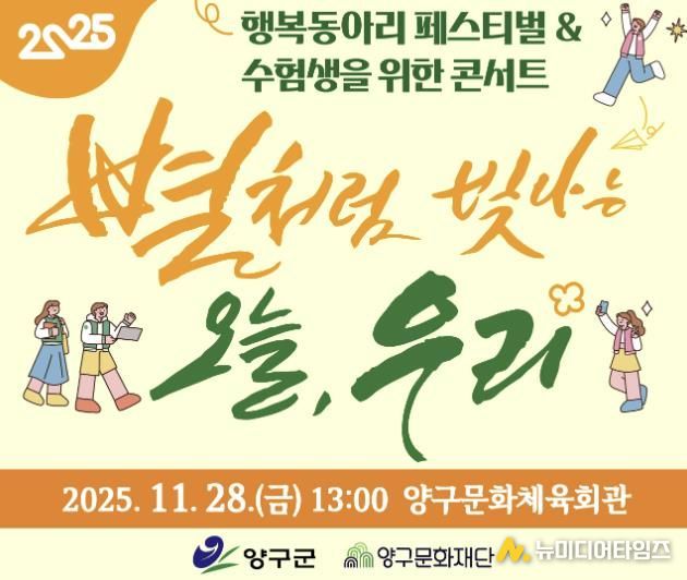 양구군과 양구문화재단이 공동으로 추진하는 ‘2025년 행복동아리 페스티벌 & 수험생을 위한 콘서트 '☆처럼 빛나는 오늘, 우리'’를 28일 오후 1시 문화체육회관에서 개최한다.