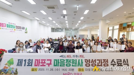 박강수 마포구청장은 11월 26일 오후 2시 20분, 마포구청 12층 중강당에서 열린 ‘제1회 마포구 마을정원사 수료식’에 참석해 양성과정을 마친 주민들에게 직접 수료증을 수여하고 활동을 격려했다.