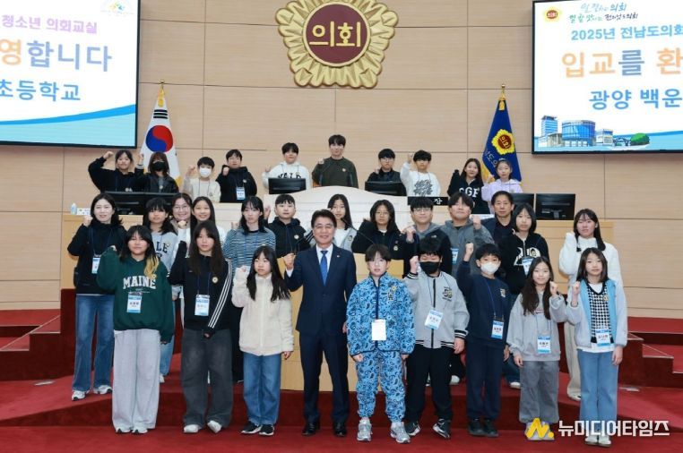 전라남도의회 김태균 의장(더불어민주당, 광양3)은 지난 20일, 전라남도의회 본회의장에서 열린 ‘2025년 제24회 청소년 의회교실’에 참석해 광양 백운초등학교 학생들과 공감의 시간을 가졌다.