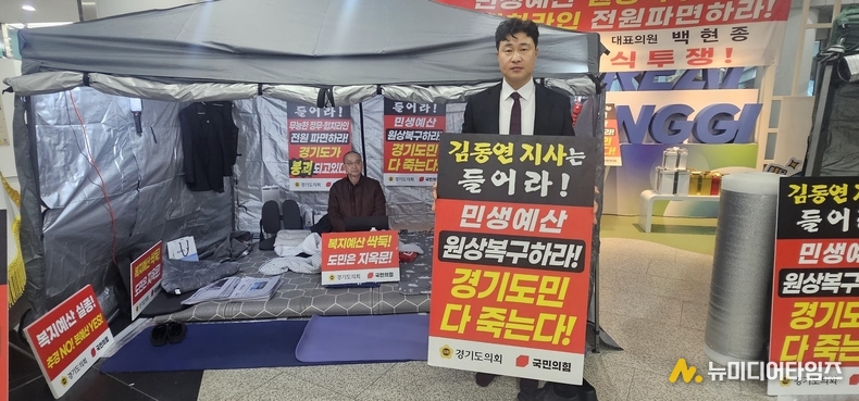 한편 경기도의회 국민의힘 백현종 대표는 복지예산의 전면적 원상회복, 사회안전망 재정비, 불필요한 도정 사업 재검토 등을 요구하며 단식을 이어가고 있다.