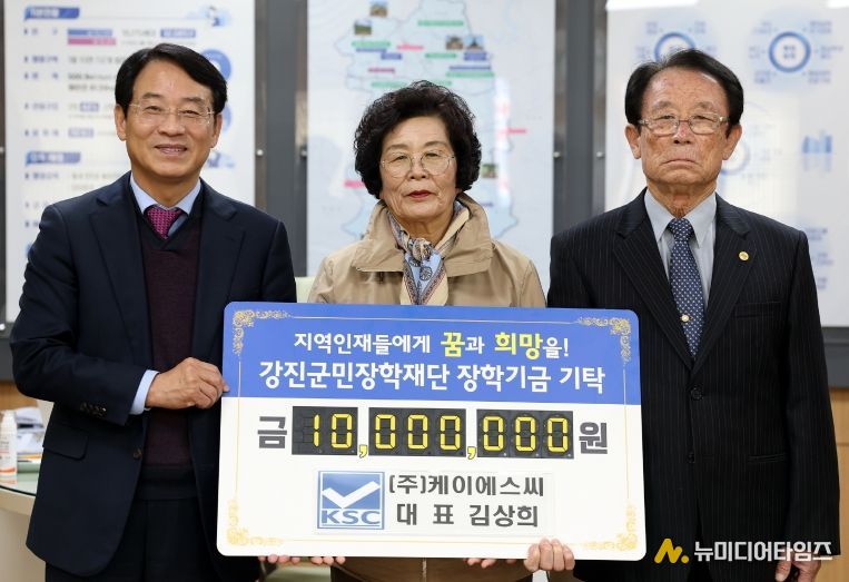 강진군민장학재단에 지역 발전과 미래인재 양성을 위해 한마음 한뜻으로 소중한 기탁 행렬이 이어지고 있는 가운데, 김상희 ㈜KSC 대표가 1천만 원의 장학금을 강진군민장학재단에 기탁 했다.