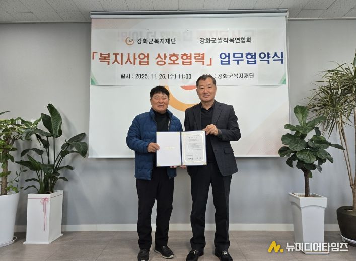 강화군복지재단(이사장 한석현)은 지난 26일, 강화군 쌀 작목 연합회(회장 한기관)와 지역사회 복지사업 확대 및 발전을 위한 업무협약을 체결했다.
