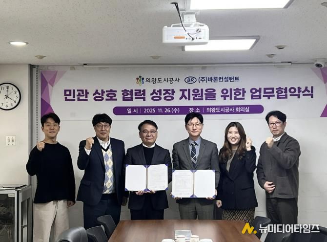 의왕도시공사가 ㈜바론컨설턴트와 11월 26일, 공사 사옥 회의실에서 혁신과 성장 지원을 위한 업무협약을 체결했다.