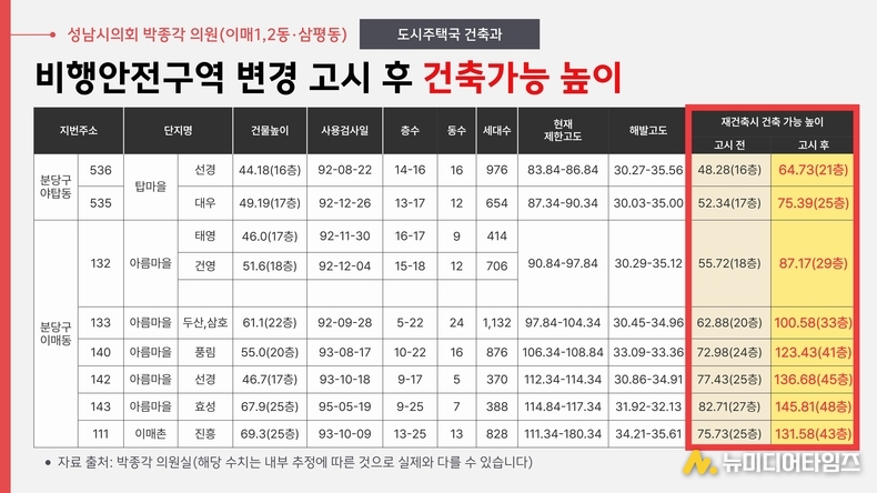특히 아름마을, 효성, 진흥아파트 등 일부 단지의 경우 20개 층 가까이 상승 여지가 있는 것으로 보이지만, 이러한 정보를 주민이 자료로 확인하고 판단할 수 있어야 한다고 강조했다.
