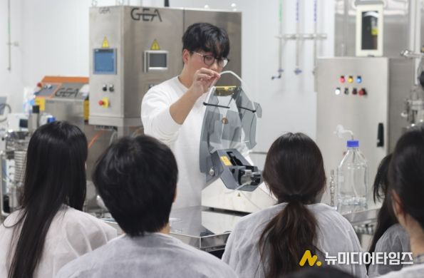 교육 과정에는 ▲GMP(우수 의약품 제조 및 품질관리기준) 제조소 투어 ▲GMP 문서관리 이론 교육 ▲배양·정제 공정 VR(가상현실) 체험 ▲원료 칭량 및 배지 조제 등 배양 실습 ▲버퍼 조제 등 정제 실습 ▲이화학·미생물 시험 등 실제 생산 환경을 반영한 단계별 실습이 포함돼, 단순히 이론 전달을 넘어 바이오의약품 제조 흐름을 현장감 있게 이해할 수 있도록 구성됐다.