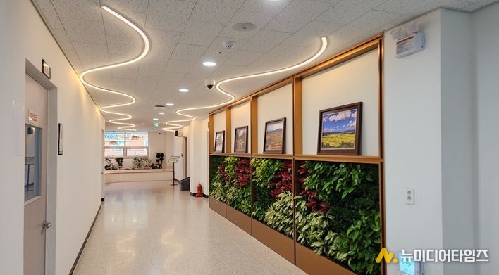 철원군은 7월에 조성한 와수복합어울림센터 4층 작은영화관 실내정원의 큰 호응에 힘입어, 2층 프로그램실 간 복도에 유휴공간을 활용하여 추가로 수직 정원 조성을 완료했다고 28일 밝혔다.